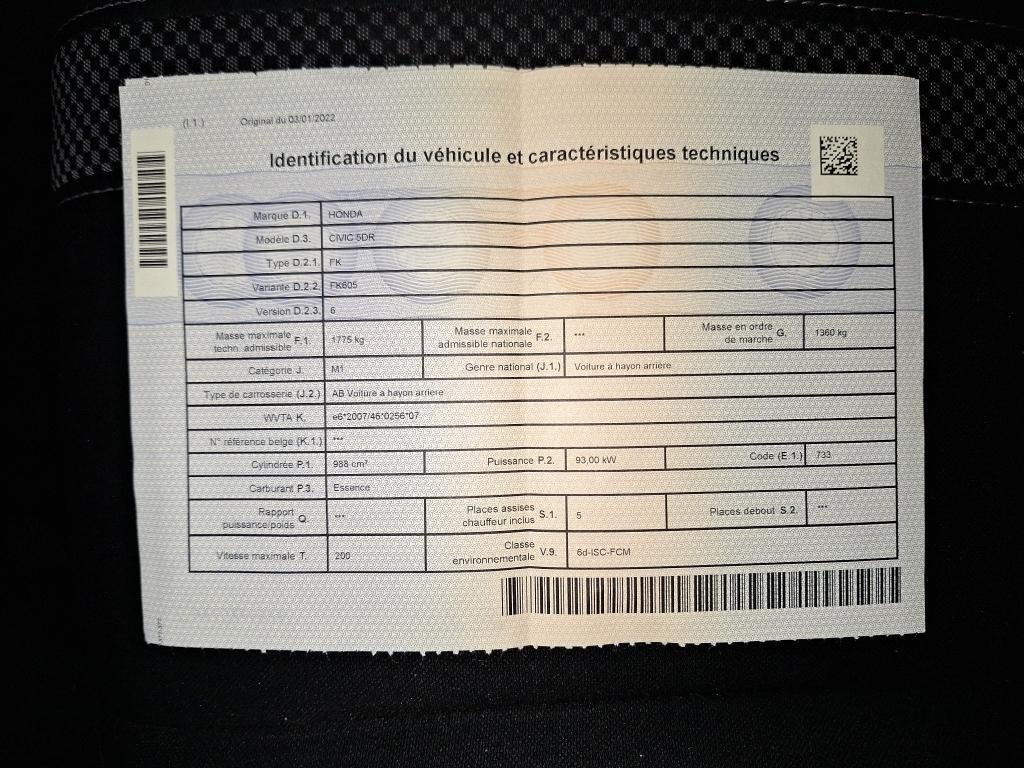Honda Civic 1.0 i-VTEC Elegance - Petrol - Automatic - 126 hp - 97.783 km Elegance, 2022