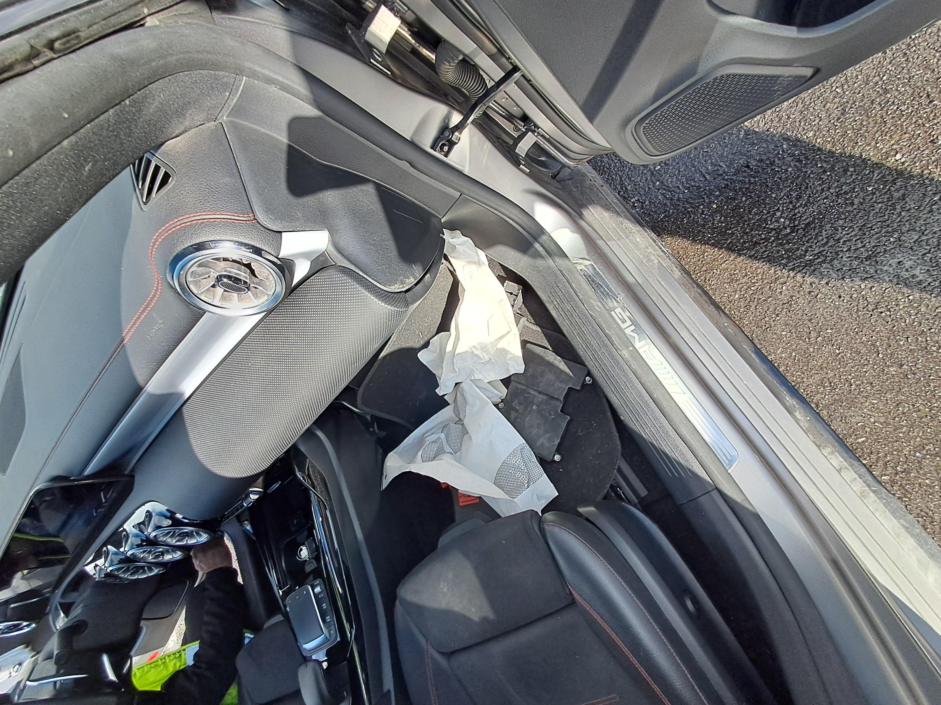 • Left and right front floor panels are cut.