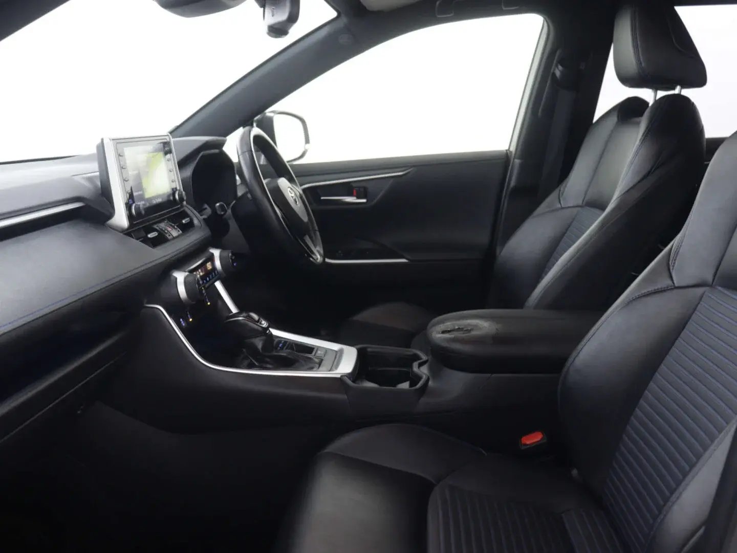 Light blue ambient lighting on front cupholders and open tray (Light blue ambient lighting on front cupholders and open tray)